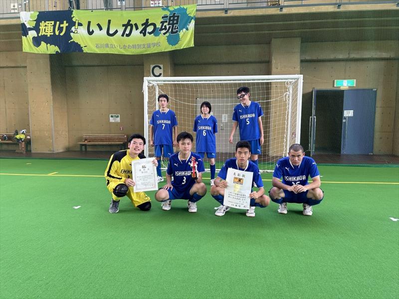 第2回全国特別支援学校フットサル大会北信越大会が9月10日(日)アクロス高松で行われました。 結果 1試合目 VS富山高等特別支援学校A ●0-11 2試合目 VS小松特別支援学校 〇8-1 3試合目 VS明和特別支援学校 ●1-3 1勝2敗で大会を3位で終えました。 たくさんの声援ありがとうございました。 来年は王者奪還できるよう練習に取り組んでいきます。