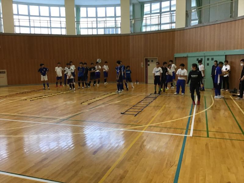 ボールフィーリングやラダー、体幹トレーニングで基礎のトレーニングを行いました。