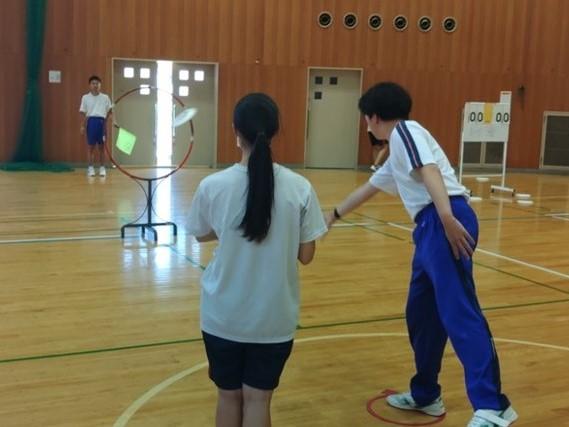 今回はキンボールの授業の締めくくりとして、3チームに分かれ対抗戦をしました。各チームで作戦会議をした後に、3回試合をしました。試合では、作戦通りに点が決まると拍手や「ナイス」といった声があがったりハイタッチをしたりする様子が見られました。合同授業後の生徒たちからは、「楽しかった」や「またやりたい」などの感想が聞かれました。