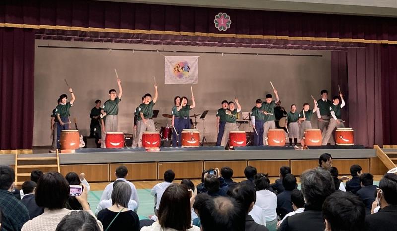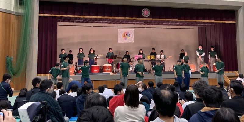 生徒は迫力ある演奏に合わせて、声を出したり、体を動かしたりして楽しんでいました。