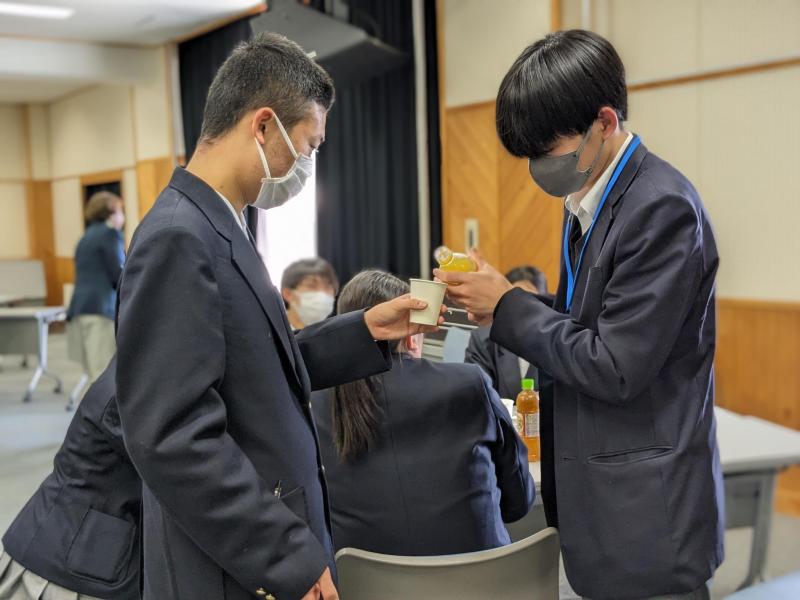 6月29日(木)の放課後、本校生徒会会長の髙橋眞之助さんと書記の西村遥哉さんが金沢向陽高校生徒会役員4名と本校で交流しました。