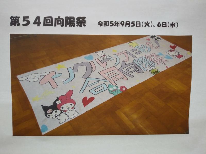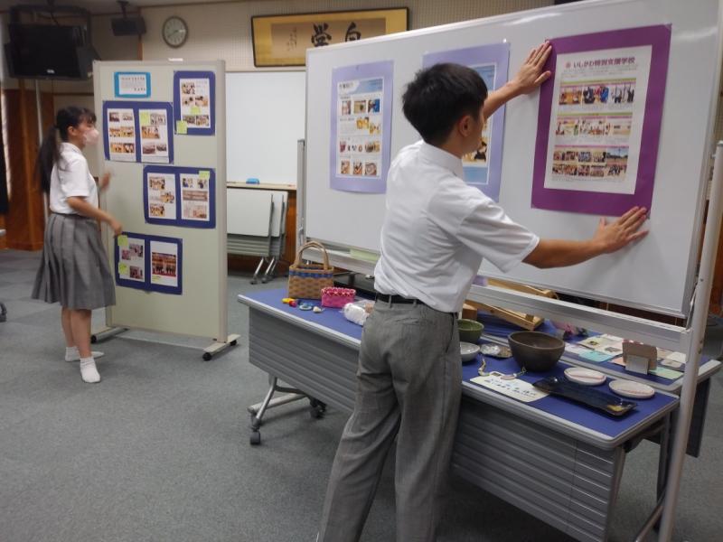 9月5日日(火)6日(水)と金沢向陽高校の文化祭が開催され、5日の午後、舞台発表をする和太鼓サークルのメンバーとともに本校生徒会副会長の眞田歩奈さんと書記の長田昂蒼さんが高等部の作業製品等の展示のため文化祭に参加しました。