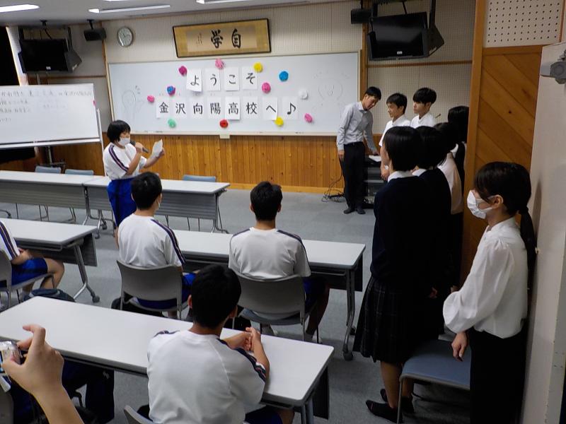 体育館では金沢向陽高校1年生徒が笑顔で迎えてくれ、両校生徒ともに久しぶりの再会に嬉しそうでした。