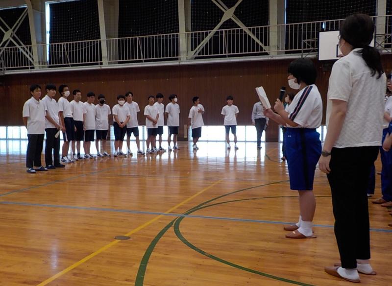 7/20(木)の1学期終業式の後に激励会が行われ、主将のA高等部 髙橋昂暉さんが本大会の目標を語り、生徒会会長のA高等部の髙橋眞之助さんから激励の言葉を送られました。
