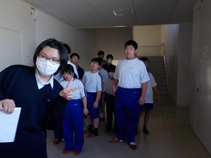 10月3日(火)に金沢向陽高校の施設見学を行いました。本校知的障害教育部門1年生は3年生時に金沢向陽高校敷地内に校舎が移転するため、どんな施設なのか、どこに自分たちの校舎ができるのかなどを知るために北部公園までの遠足と合わせて実施しました。