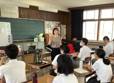 ソフトバレーボールの授業を行い、生徒同士はうちとけている様子で、お互いに声を掛け合いチームで協力しながら楽しく取り組んでいました。