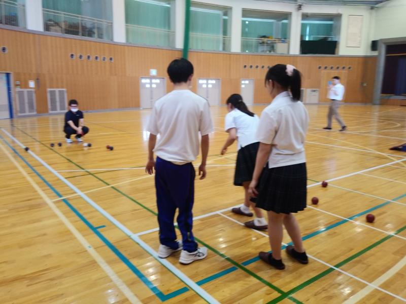 森本中学校とボッチャ交流をしました