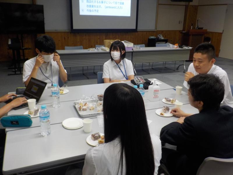再度焼きドーナツを試食し、これから商品化していくための改善策を各班で話し合いました。「このままでよい。」「さつまいも感をもっと出せたら・・・。」といった意見が出され、焼き菓子の商品化へのイメージが具体化されていきました。