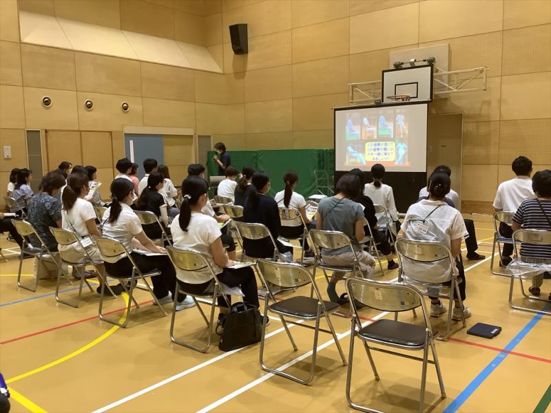 今回は自己紹介を兼ねたレクリエーションをしたのち、キンボールのルールを確認し、試合形式で体を動かしました。