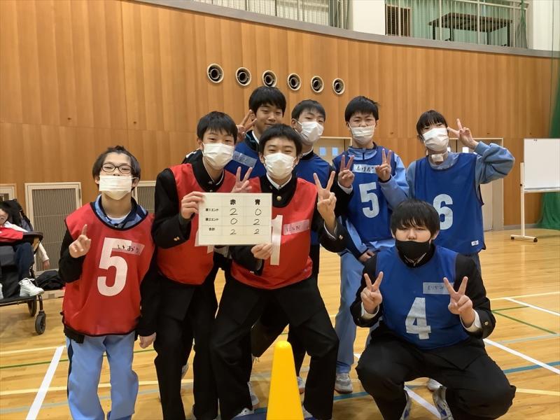 11月20日(月)に森本中学校と本校A中学部、B中学部3年生が学校間交流を行いました。森本中学校と本校の生徒が6人1チームになってボッチャ交流戦を行い、生徒同士でコミュニケーションをとったり、ハイタッチをしたりと終始笑顔であふれていました。