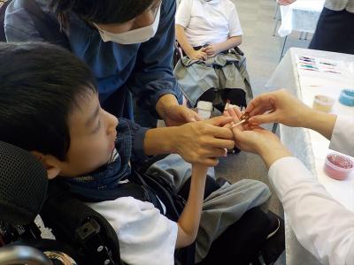 肢体不自由教育部門の5年生以上の児童生徒が参加して、いろいろな質問をしました。
