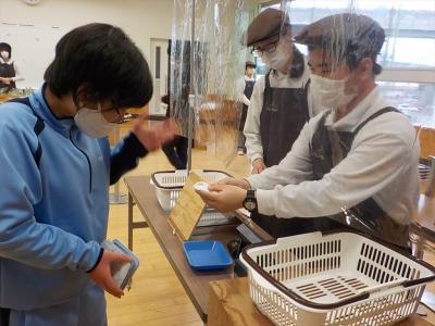 12月16日(木)に、B中Shopsがありました。作業学習で制作したペンケースや栽培したダイコン等を販売しました。また、高等部からのお菓子も販売しました。今回で、3年生が最後の店員ということで、引き継ぎのため、初めて2年生も店員として参加しました。
