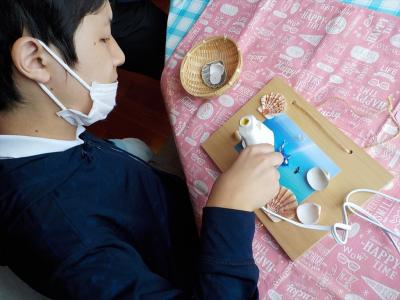 1日目はのとじま水族館でのイルカショーやジンベイザメの見学、貝殻や能登ヒバのフレーム作り体験などをしました。