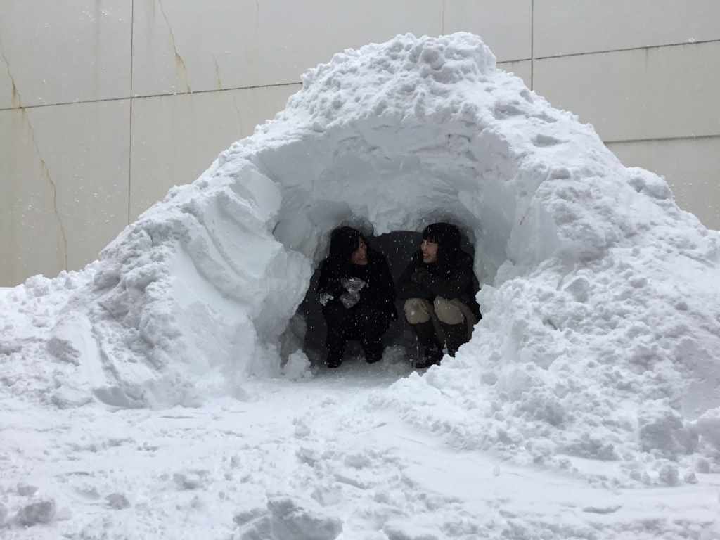 中庭には大人が二人入れるほどの大きなかまくらができました。