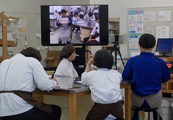 向陽高校は学校紹介、本校はフードデザイングループの作業紹介を行い、初顔合わせと