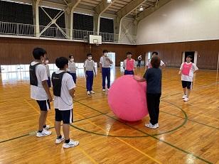 合同チームで協力し合いながら楽しくキンボールを体験することができました。