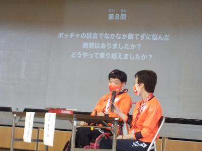 高等部のボッチャ部員たちは、あこがれの選手に会えて刺激を受けたようでした。本校から、田中選手に続くパラリンピアンが出るかも・・・