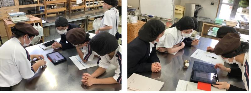 6月13日(木)にB高産業技術コースのフードデザイングループの生徒8名と、金沢向陽高校2年の「食品」の授業を選択している10名の生徒が、本校で共同学習を行いました。