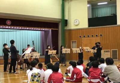 小学部、中学部の児童生徒たちは、弦楽器の生の響きを全身に感じながら、静かに聴き入っていました。