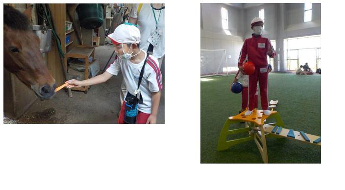 金沢乗馬倶楽部では乗馬とえさやり体験を、あめるんパークでは遊具やボールなどで楽しく遊びました。