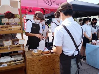 地元商店街からお声をいただき、屋外での販売に参加させていただきました。参加した生徒にとって、買っていただける喜びを知る貴重な機会となりました。