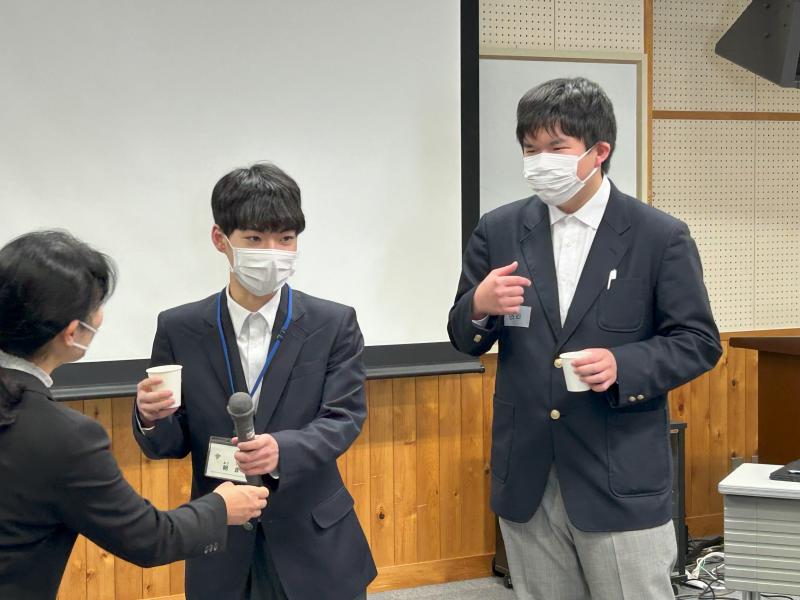 最後はともに学習し商品開発した「ゴロゴロ金ドーナツ」とジュースで乾杯をして、グループで楽しく歓談しました。いしかわの生徒からは「友達もできました。また、交流したいです。」向陽の生徒からは「最初は初めて会う人とどう接したらよいか、緊張もするし交流は不安だった。だけど、交流することでお互いの気持ちを知ることができた。また、スイーツを一緒に販売することで良い経験ができた。」という感想がありました。