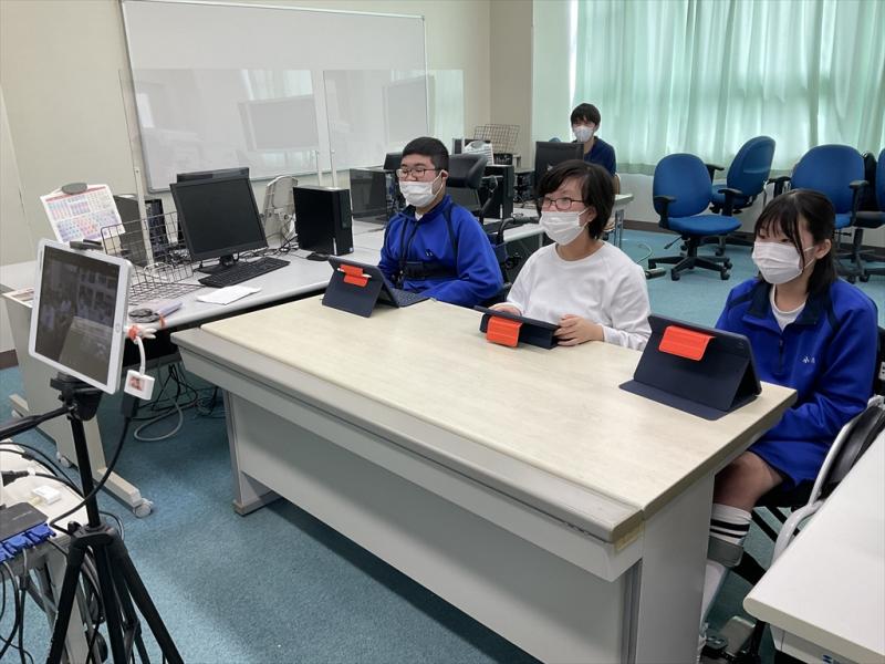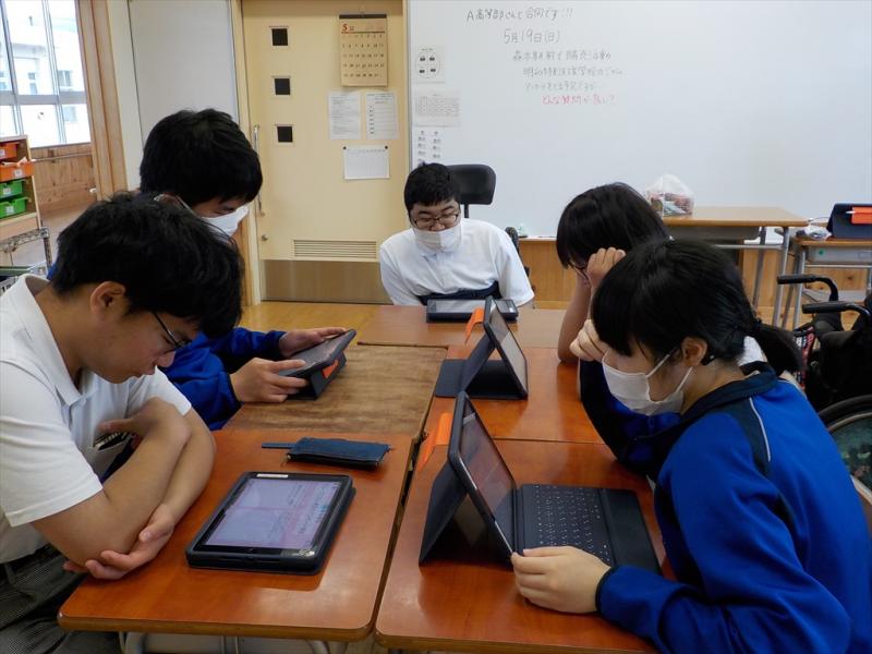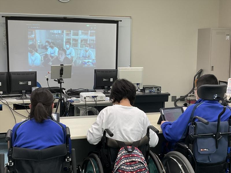 今回は肢体不自由特別支援学校である小松瀬領特別支援学校と「油吸い取りパック」製作に関する打ち合わせをオンライン会議で行いました。作業学習で油吸い取りパックを作る本校の高等部生徒が、製作のポイントなどを小松瀬領特別支援学校の生徒に伝え、作成に関して打ち合わせを行いました。オンラインでの交流でしたが、「緊張したけど、他の学校の生徒と交流できるのが楽しかった」、「またやりたい」と交流を楽しみにしている様子でした。