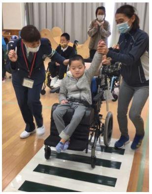 後半は、信号機と横断歩道のリアルな模型を使って、横断歩道を渡る練習をしました。「右見て、左見て、まだ右を見て」や「手を上げて渡りましょう」を守ることができて、みんな笑顔でした。