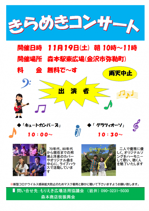 今年最後の軽トラ市です 投稿日時 : 2022/11/18 サクラ 11月19日(土)8時から11時まで、森本駅前広場にて軽トラ市、きらめきコンサートが開催されます。 今年最後の軽トラ市です。 本校からは「さくらShops」が出店し、生徒たちが作業製品を販売します。ぜひお越しください。