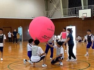 合同チームで協力し合いながら楽しくキンボールを体験することができました。