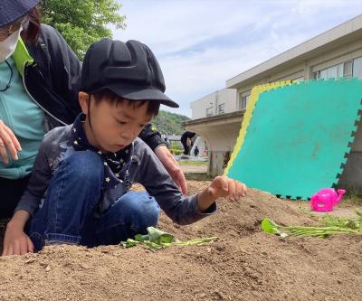 さつまいもの苗植えをしたよ 投稿日時 : 2022/05/24 サクラ 畑に行って、なえや土にたくさん触れて、なえ植えをしました。 なえを植えた後は水やりもしました。 これから、係を決めて、水やりをします。 秋に大きなおいもがたくさんとれるといいな!