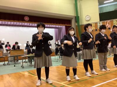 2月25日に予餞会が行われました。コロナ禍で開催自体が危ぶまれましたが、感染対策を十分にし、無事行うことができました。行事が中止となり、今年度最初で最後の全学年での行事は、笑顔と涙でとても素晴らしい会になりました。