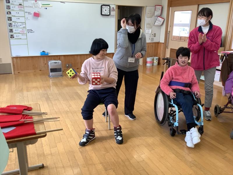 ルールをしっかり覚え、サイコロの出た目に応じて旗をやりとりしました。