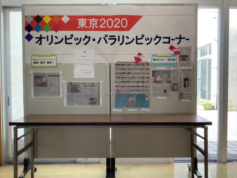 本校ではオリンピック・パラリンピック教育を推進しています。その一環として、エントランスに「オリンピック・パラリンピックコーナー」を設けました。子どもたちの関心を深めていきたいと思います。また、授業等でも取り上げていく予定です。