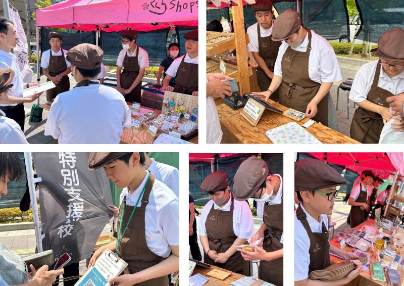 5/16(日)に森本駅東広場で学校合同祭が開催されました。本校からはB中学部、B高等部の生徒6名が参加し、さくらShopsを出店しました。