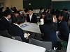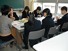 班の司会進行の人が示した論点について、約1時間、グループで討議をした後、代表者が話し合った内容を全体発表しました。