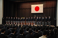 合唱部による校歌披露 ホーム担任の紹介 4月8日、入学式が挙行され、
