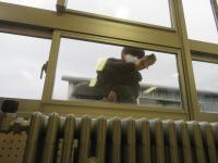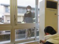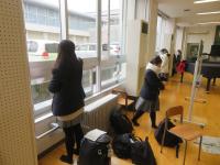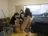 外はあられが降る中、全員で音楽室をピカピカにしました。-