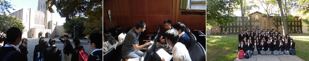 | 【研修内容】 ・生徒各自の課題研究の英語によるプレゼンテーションを実施し、現地教員や学生の質疑を受け、議論を行う。 ・全米で4番目に古く、2人の大統領を輩出している名門私立大学を訪問し、小グループに分かれ英語でのキャンパスツアーに参加し、米国の大学生活とはどのようなものかを質疑応答を通して学ぶ。 ・7月に本校を訪問したプリンストン大学の学生達と交流し、生徒自身の将来への夢や、アメリカでのキャリアパスについて英語で語り合う。 |