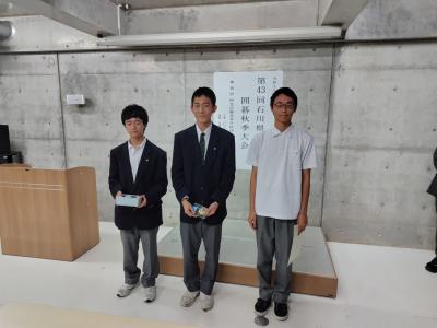 団体の部には、髙木さん、小早川君、吉尾君(すべて2年生)で臨み、あと一歩で入賞となる好成績でした。