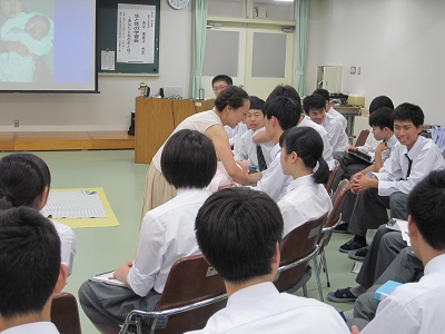 7月12日(水)に、星の子所産院の坂谷理恵子先生をお招きし人間科学の特別講義を開催しました。この講義では「性」をとおして「命」や「生」について考えることの大切さを学ぶことができました。講義の中では、実際に妊婦体験や胎児体験、新生児の人形を抱く体験をする時間も設けられ、様々な学習をすることができました。