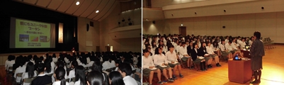 The mini-lecture about JICA was held for 49 participating students.  Ayako Yamashita, who had been involved in JOCV (Japan Overseas Cooperation Volunteers), was invited and gave a lecture about nourishment education in Bolivia.  She explained the difficulty of working internationally as a nutritionist, telling them about language barriers and different cultures.  At the same time, she talked about satisfaction she felt when she got the trust of local people.  This was a good opportunity for the students who were interested in intercultural communication or international contribution to broaden their minds.