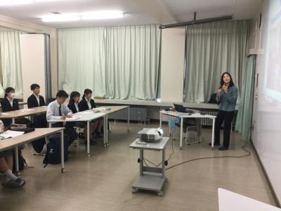 講師の稲垣さんは、金沢大学医学類をご卒業された後、いくつかの病院で医師として働かれていました。その後、アメリカのジョージタウン大学で学ばれた後、同大学の国際保健学部特任助教授として現在活躍されています。グローバルな舞台で活躍されている先輩のお話を聞くことができ、そのありがたさを生徒たちはかみしめているようでした。