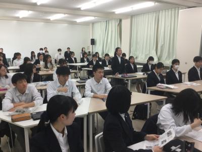 4月18日(金)に卒業生講話として、本校の卒業生でいらっしゃる稲垣陽子さんに講義をしていただきました。当日は、2~3年の希望生徒が35名参加し、講義だけでなく、その後の質疑応答でもたくさんの質問が出て、大いに盛り上がりました。