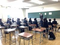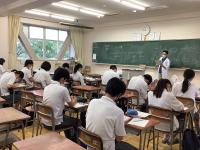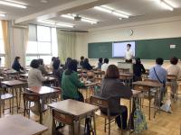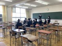 今年度は、講堂での全体会の後、各教室で2講座の授業を体験してもらいました。その後、泉丘質問Time及び校舎見学や部活動見学も行いました。部活動見学は、2年生が修学旅行直前で参加できないため、活動する部活動が少ないこともあり、質問Timeの後、教室で部活動紹介動画を見ていただきました。