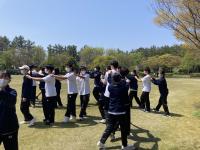 4月20日(水)に遠足およびオーシャンクリーンアップが実施されました。天候にも恵まれ、朝から元気いっぱいの1年生。午前中は翠ヶ丘いこいの広場で、各クラスの会長たちが考案した企画によるレクリエーション。生徒たちによる運営も見事で、大変盛り上がりました。その後はクラス写真撮影。すっかり打ち解けた様子で、笑顔でフレームに収まっていました。続く昼食では大きな円を作りながらの食事の光景が多く見られ、食事後には和気あいあいと交流を楽しむ様子も。