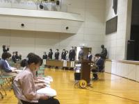 5月20日(金)本校の啓泉講堂で県高校総体・総文の壮行式が行われました。吹奏楽部による入場行進や応援団の激励が選手たちを勇気付けます。各部の部員が、今大会にかける意気込みを語ってくれました。