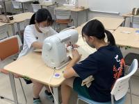 土曜日の今日。校内やグラウンドで、多くの生徒が来週から始まる記念祭に向けて準備をしていました。ベニヤ板にペンキを塗ったり、ドリルで穴をあけたりしているのは1年生。教室や屋外では3年生が先日張り合わせた模造紙に背景画を描いていました。背景画と並行して、Chromebookを使って野外劇の音声編集を行っているグループ。ミシンなどを使って衣装や小道具を製作するグループ。試行錯誤しながらのクリエイティブな活動は楽しそうです。
