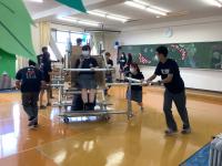 5人でチームを組み、「高校生と異世代との交流」や「防災意識向上への発信」などの自分たちが発見した課題について、解決策を発表しました。生徒たちは、用意したスライドを見せながら、5人が交代しながら発表しました。生徒は堂々と自分たちが考えたアイデアを発表していましたが、中には緊張している生徒もいて、的確に話することの難しさを改めて感じていたようです。