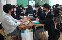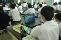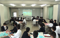 予選を勝ち抜いた2年生の代表グループの発表を講堂で行いました。1年生は講堂で視聴し、2年生はYoutube Liveで配信された映像を各教室で視聴しました。